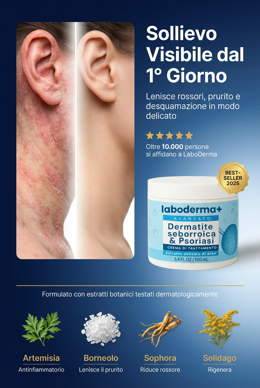 Ho visto almeno cinque dermatologi diversi, ho provato cortisone e rimedi naturali… ma nulla funzionava. Era come se non esistesse alcun trattamento efficace. Poi ho scoperto il sito di LaboDerma+ e la mia vita è davvero cambiata. La loro crema è incredibile: dopo alcuni mesi di utilizzo non ho più nulla né sul viso né sul cuoio capelluto. Sono sparite perfino le mie forfora. Grazie!