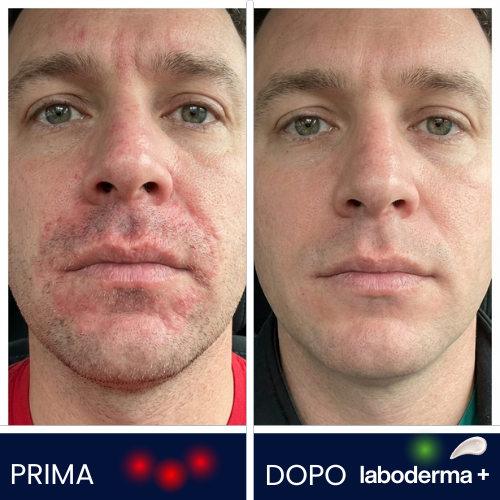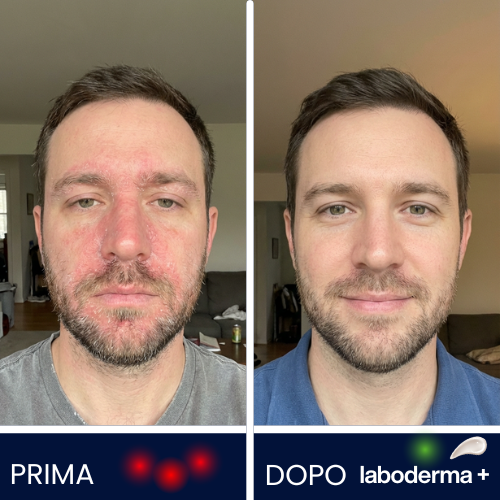 “Sotto la barba avevo sempre pelle rossa e che prudeva. Ho messo Laboderma e già dopo 48 ore la zona era più calma, senza squame. Finalmente una cura che funziona anche per gli uomini.”