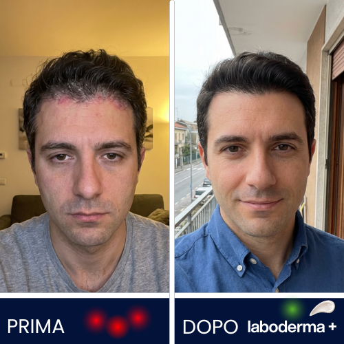 Ho provato tutti i trattamenti possibili: funzionavano per qualche giorno, a volte per una settimana, ma poi tutto tornava come prima. Lavoravo in ufficio, quindi la forfora era davvero fastidiosa per me — ci pensavo continuamente. Grazie al trattamento di LaboDerma+, sono finalmente riuscito a liberarmi di questa sofferenza.